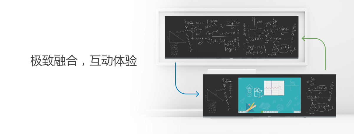 书写黑板与触控显示无缝对接 书写流畅,擦除无痕 高清显示,灵敏操作